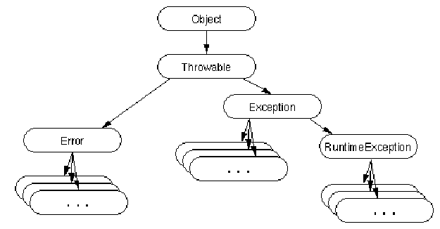 Szczególną podklasę klasy Exception stanowią wyjątki, które występują podczas wykonywania programu, są to wyjątki typu RunTimeExceptions (i jej podklas np.: NullPointerException, ClassCastException, IllegalThreadStateException i ArrayOutOfBoundsException) i występują np.: wtedy, gdy zostaną wyczerpane zasoby systemowe, nastąpi odwołanie do nie istniejącego elementu tablicy i inne. Gdy wyjątek taki nie jest obsłużony, program zostaje zatrzymany, a na ekranie pojawia się nazwa wyjątku oraz klasa i metoda, w której wystąpił. Dzięki temu wiemy, w którym miejscu kodu wystąpił błąd i można go szybko poprawić.